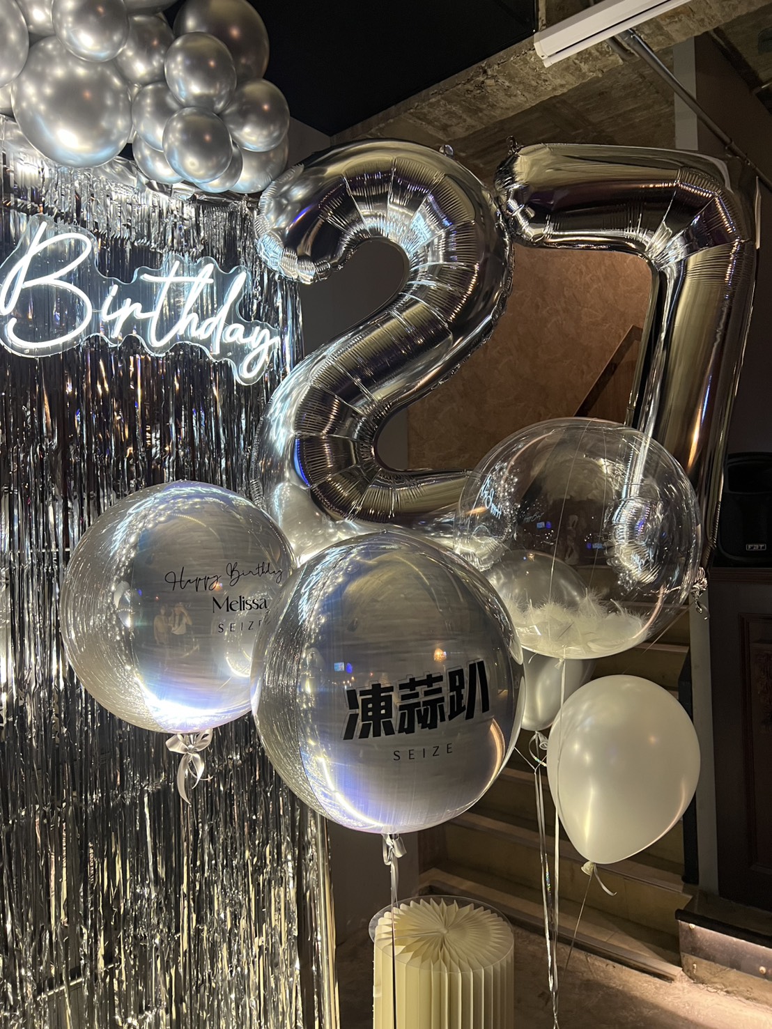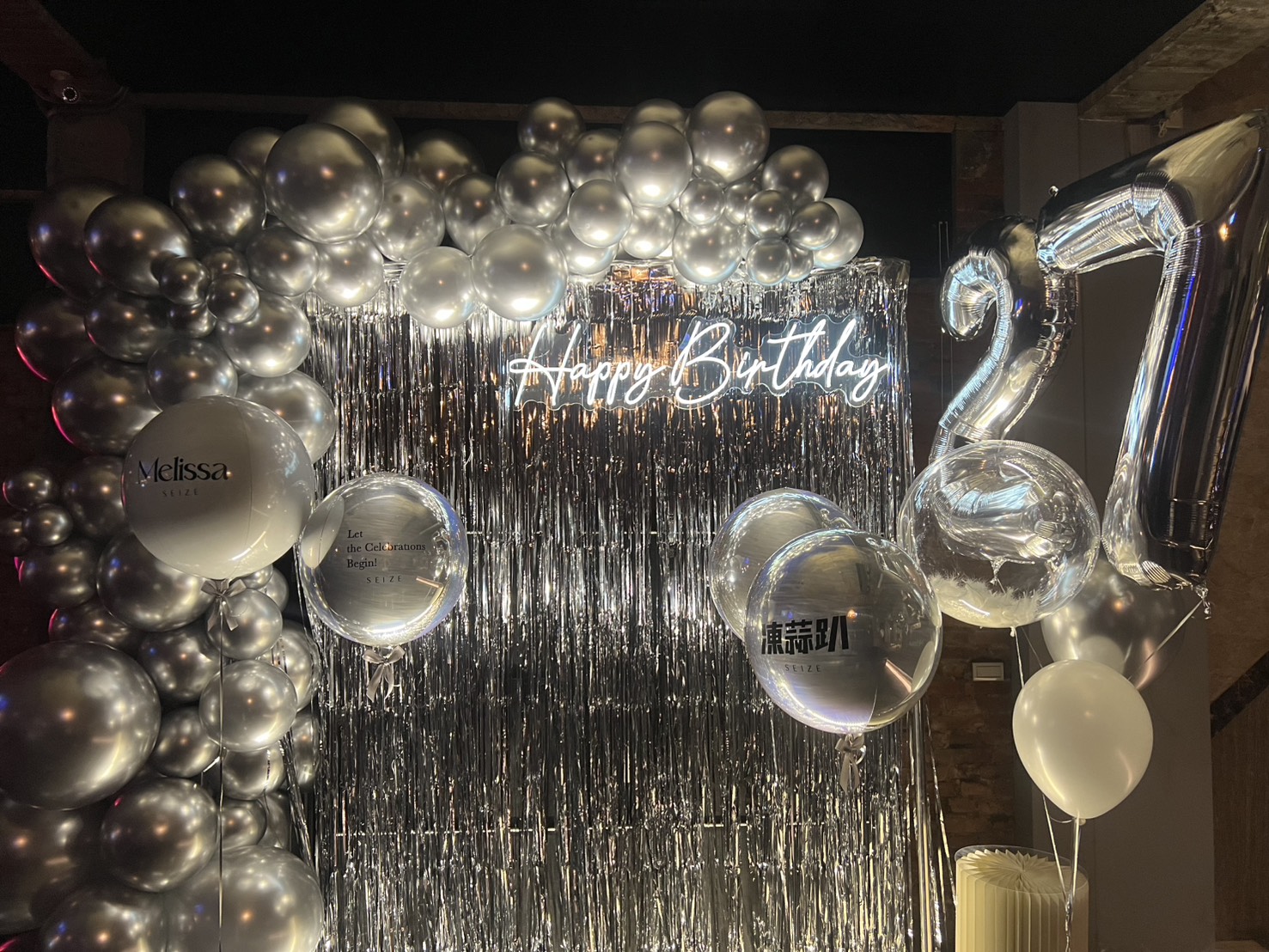 從氣球銀河、閃片簾幕,到手寫燈箱與入場指引 我們用燈光拉開序幕,用氣球堆疊回憶